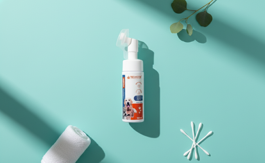 Techno DE Derma Foam menghilangkan kotoran & Membersihkan bulu dan kaki tanpa bilas/ memandikan. Untuk desinfeksi dan pencegahan penyakit.